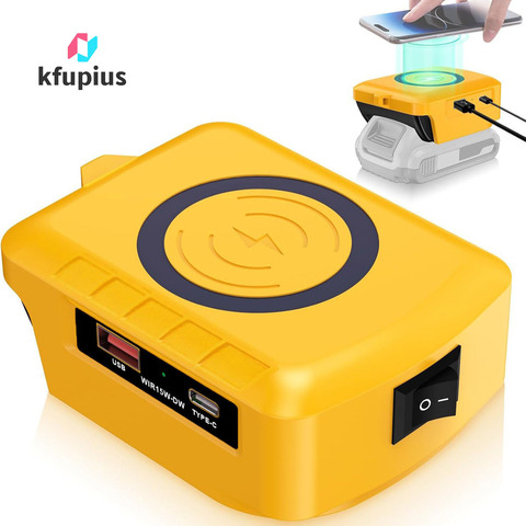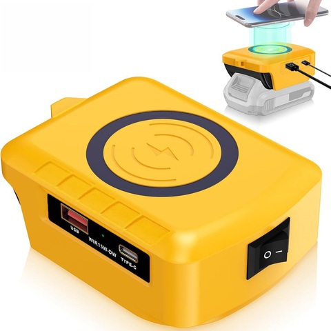 Compatible con Batería Dewalt 18/20V, Cargador Rápido-Tipo-C/USB PD | Con Interruptor | Admite Carga Inalámbrica (Batería Excluida)