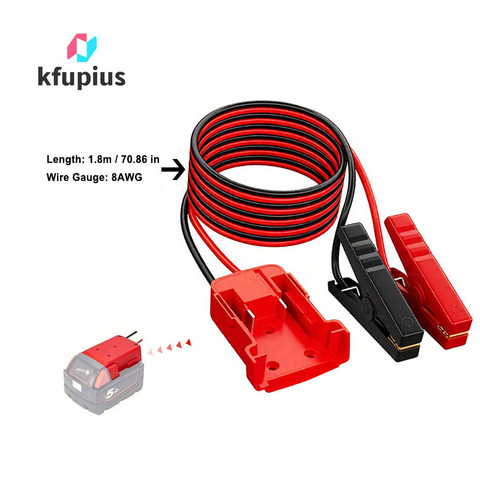 Directo de fábrica, adaptador para baterías Milwaukee: vehículos de arranque automático o cortacéspedes con cable de 8AWG/5,9 pies y pinzas de cocodrilo.